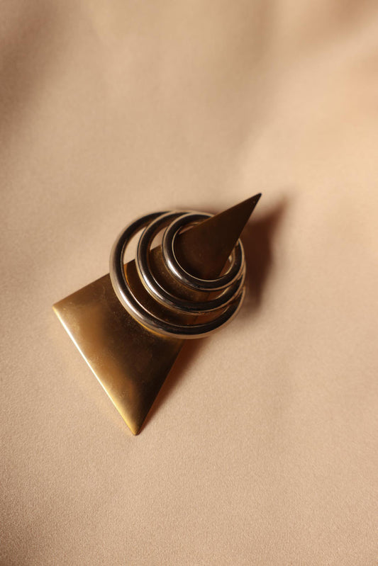 Abstract Matte Gold and Silver-Tone Geometric Brooch