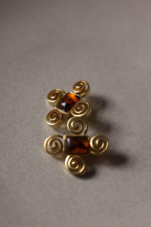 1980's Clara Studio Matte Gold Sculptural Clip on Earrings