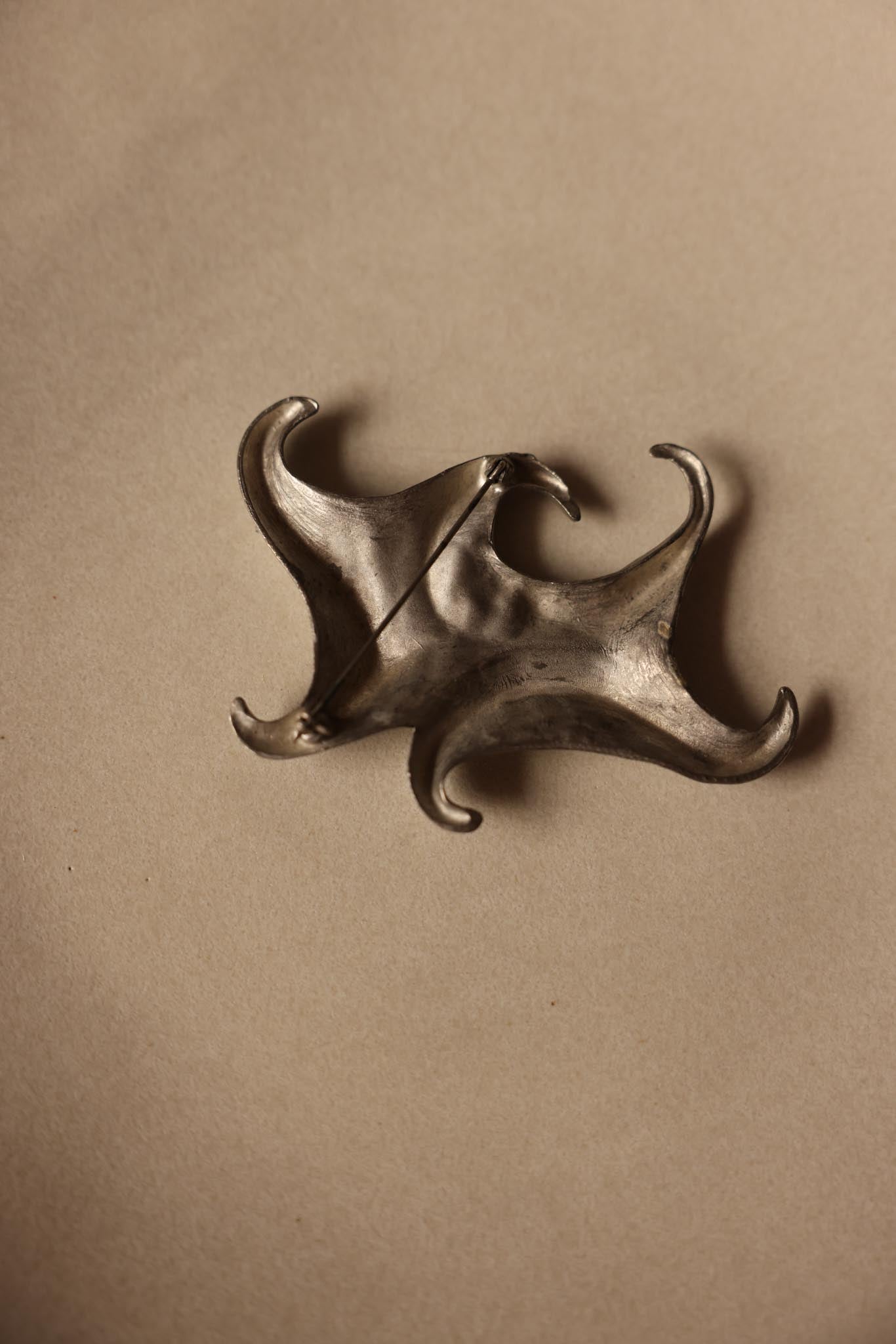Bold and sculptural silver-tone brooch featuring an abstract, fluid design with curved edges reminiscent of modernist art. This is a large statement piece, measuring 3.2 inches long and 2.3 inches wide, and weighing 38g. Its dramatic form and metallic sheen make it a striking accessory—perfect for adding an artistic edge to a blazer, coat, or evening look.