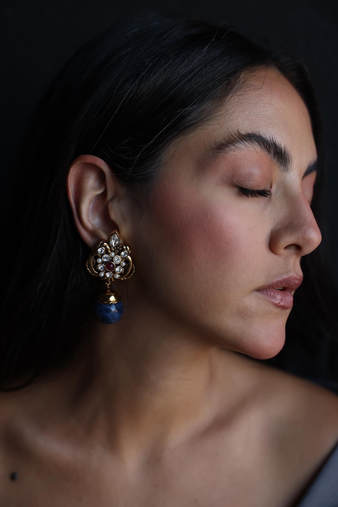 Earrings: Clip-on style, 2.5 inches long, 48g combined.