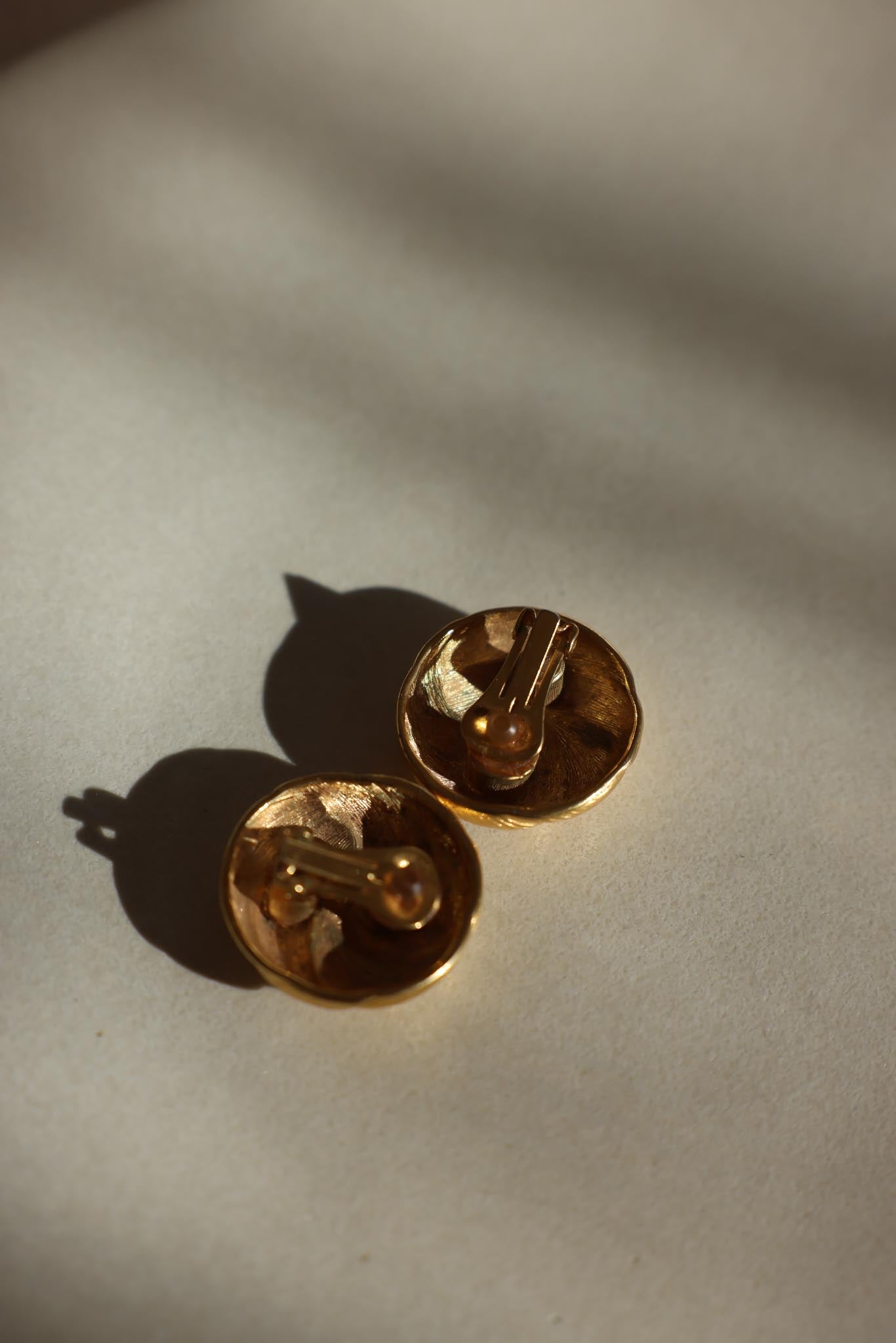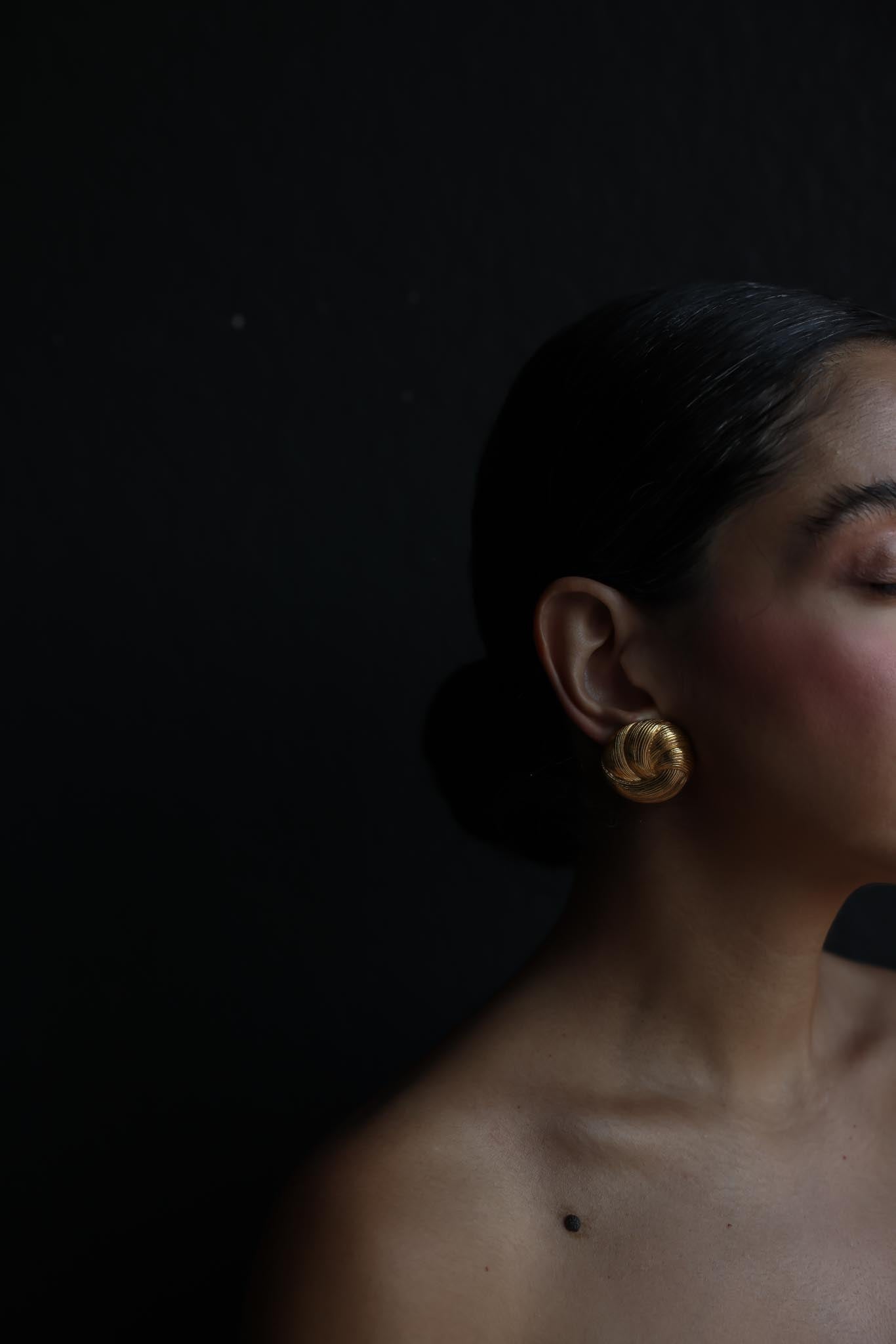 Brushed gold-tone clip-on earrings featuring a sculptural knot design with fine ribbed detailing. These earrings offer a timeless, elegant look that pairs effortlessly with both casual and formal styles. Measuring 1.3 inches across and weighing 38g combined, they have a smooth clip mechanism for comfortable wear.