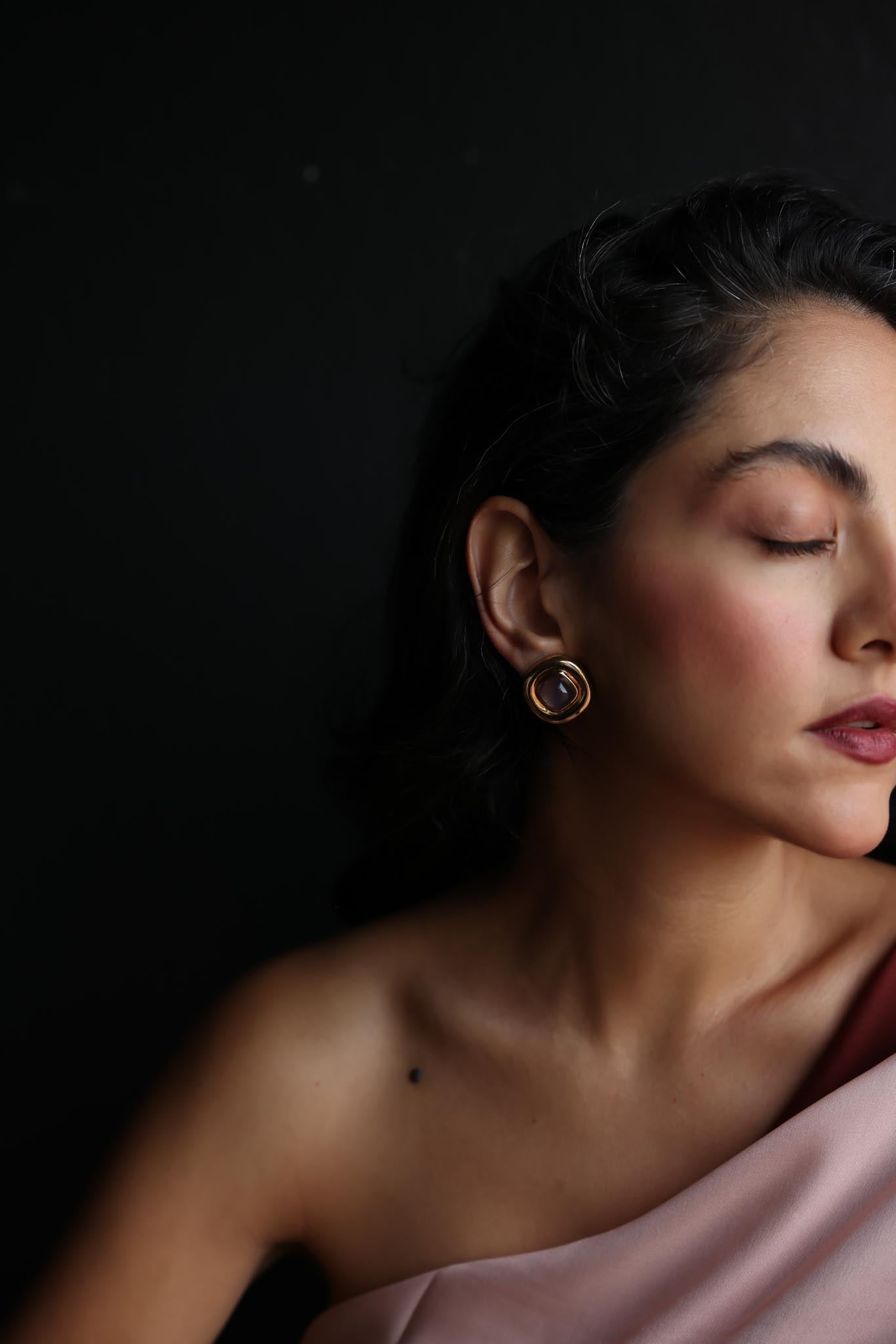 Gold-Tone Clip-On Earrings with Purple Cabochon