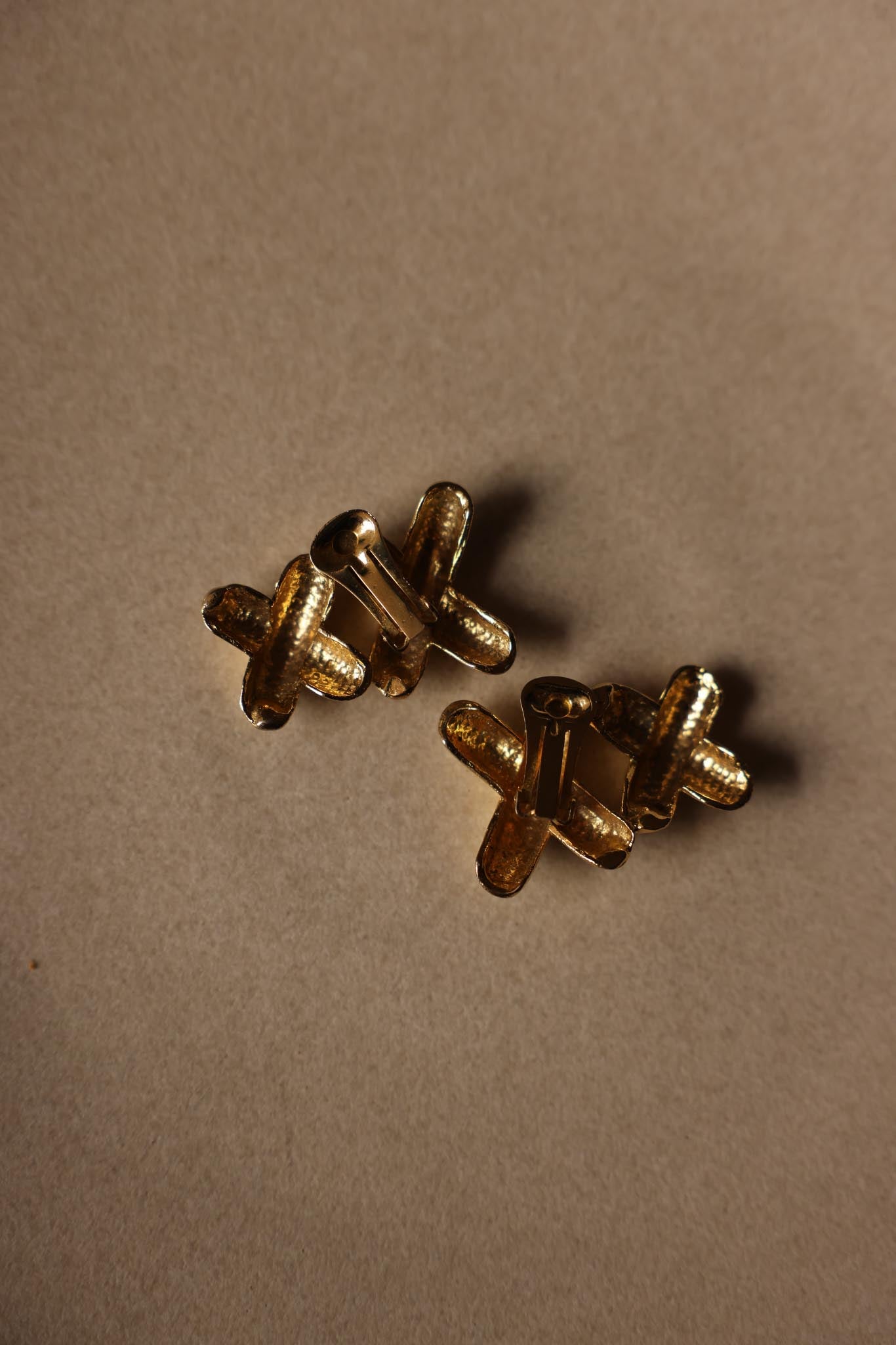 Gold-Tone Cross Knot Clip-On Earrings, 1980s