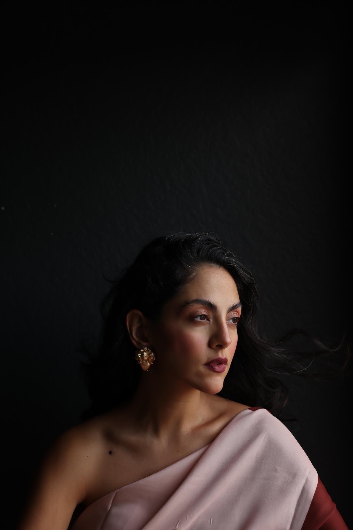 Pair of gold-tone clip-on earrings featuring a detailed floral design with textured petals surrounding teardrop-shaped faux pearls. The earrings measure 1.7 inches long and weigh 30g combined. Elegant and bold, they bring a timeless statement touch to any look.