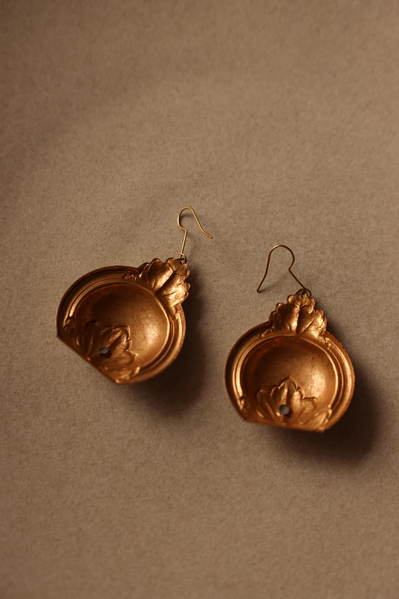 Gold-Tone Pierced Earrings with Ornate Leaf Detailing