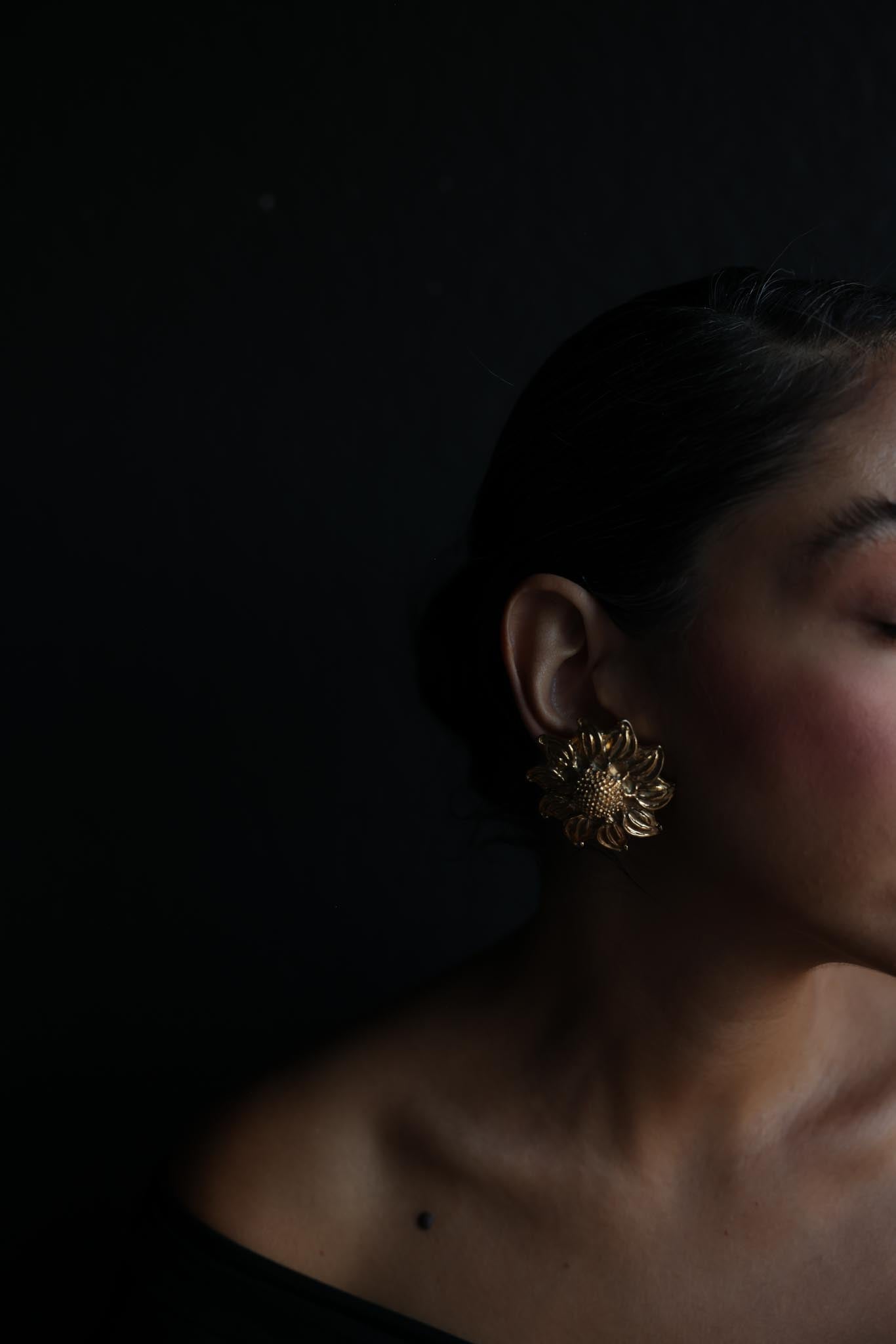 Bold and radiant, these 1980s gold-tone sunflower clip-on earrings bring a touch of sunshine to any look. The textured center and layered petals create beautiful dimension, making them a standout accessory. Lightweight and comfortable, they are perfect for all-day wear.